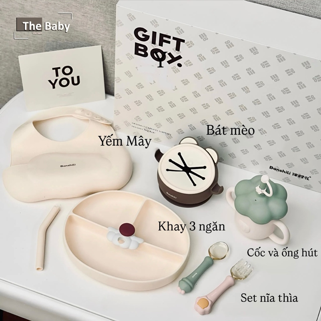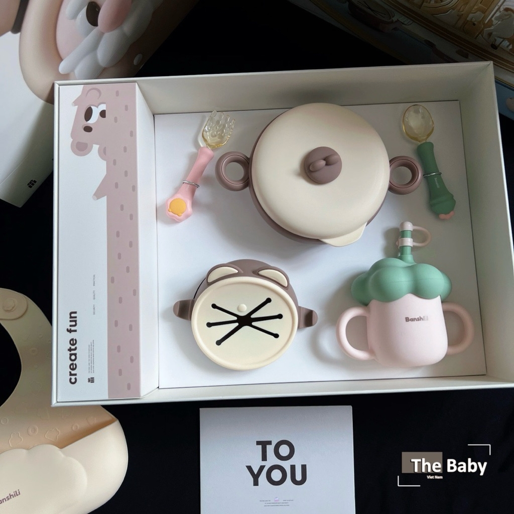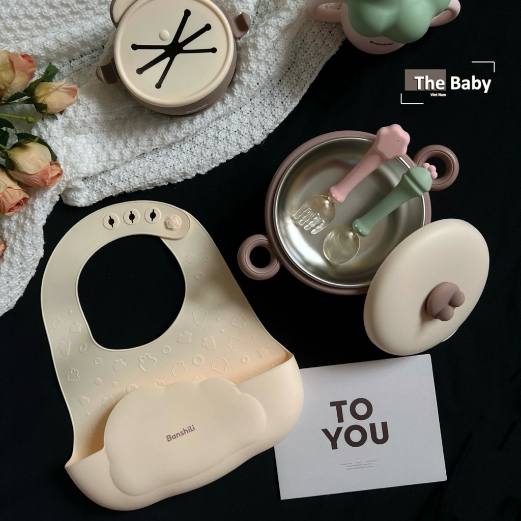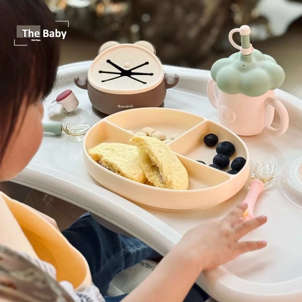 𝐁𝐨̣̂ 𝐀̆𝐧 𝐃𝐚̣̆𝐦 𝐒𝐢𝐥𝐢𝐜𝐨𝐧 𝐁𝐚𝐧𝐬𝐡𝐢𝐥𝐢 𝐜𝐡𝐢́𝐧𝐡 𝐡𝐚̃𝐧𝐠 / Đ𝐨̂̀𝐧𝐠 𝐇𝐚̀𝐧𝐡 𝐀𝐧 𝐓𝐨𝐚̀𝐧 𝐂𝐡𝐨 𝐁𝐞́ 𝐘𝐞̂𝐮Nuôi dưỡng hành trình ăn dặm an toàn, sạch sẽ và đầy màu sắc cùng 𝐁𝐚𝐧𝐬𝐡𝐢𝐥𝐢 – bộ ăn dặm silicon chính hãng, thiết kế thông minh, bảo vệ bé từng bữa ăn.—————————𝐓𝐡𝐨̂𝐧𝐠 𝐭𝐢𝐧 𝐜𝐡𝐢 𝐭𝐢𝐞̂́𝐭:▪️Đế hút chân không – chống trượt: Giúp bé không làm đổ thức ăn, giữ bát cố định khi bé tập xúc.▪️Yếm silicon chống bẩn: Hứng trọn nước bọt và thức ăn rơi, dễ dàng vệ sinh sau mỗi bữa. Có 4 nấc điều chỉnh linh động▪️Thìa dĩa bo tròn, mềm mại: Làm dịu nướu nhạy cảm, cho bé tự ăn thoải mái, giúp tập khả năng cầm/nắm/điều khiển tự ăn.▪️Khay chia ngăn: Giúp phân biệt thức ăn, kích thích bé trải nghiệm nhiều hương vị.▪️Cốc sữa kèm ống hút xinh xắn, dễ sử dụng.▪️Hộp/túi quà xinh xắn, sang trọng, phù hợp làm quà tặng thôi nôi, sinh nhật,..—————————▪️Thương hiệu: Banshili▪️Chất liệu: 100% silicon lỏng, PPSU — không chứa BPA, Phthalate, an toàn tuyệt đối▪️Đặc tính: Chịu nhiệt tốt, bền, mềm mại, dễ vệ sinh, nhanh khô, không mùi, chứng nhận an toàn từ FDA▪️Bộ bao gồm: Yếm silicon, khay chia ngăn hoặc bát, cốc, thìa – dĩa mềm, có thể thay đổi theo gói.▪️Dễ sử dụng & bảo quản: Dùng được trong lò vi sóng, máy tiệt trùng, máy rửa chén; nhanh khô, không giữ mùi.▪️Mẫu dụng cụ: bộ ăn dặm—————————𝐓𝐡𝐞 𝐁𝐚𝐛𝐲 𝐕𝐢𝐞𝐭 𝐍𝐚𝐦 - 𝙲ù𝚗𝚐 𝚌𝚘𝚗 𝚕ớ𝚗 𝚕ê𝚗 🤎#baby #thebabyvietnam #toys #kids #trending #decor #pony #ponychair #korea