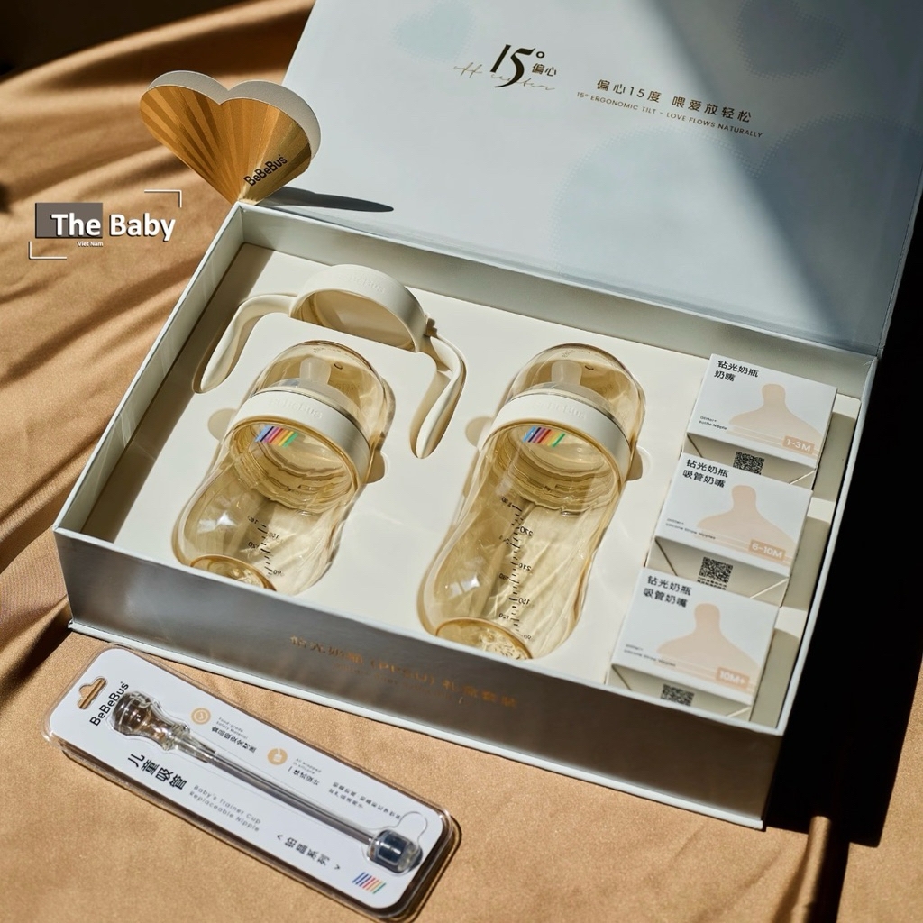 Bình sữa được làm từ chất liệu PPSU (Polyphenylsulfone) – nhựa y tế siêu bền, chịu nhiệt lên đến 180°C, không chứa BPA hay chất độc hại, an toàn tuyệt đối cho bé sơ sinh và trẻ nhỏ.————▪️Thương hiệu: BebeBus▪️Chất liệu: PPSU + silicon▪️Tính năng:- Chịu nhiệt cực tốt: Tiệt trùng dễ dàng bằng nước sôi, máy tiệt trùng hay lò vi sóng mà không biến dạng.- An toàn tuyệt đối: Không chứa BPA, đạt tiêu chuẩn FDA và CE châu Âu.- Núm ty silicone siêu mềm: Mô phỏng ti mẹ tự nhiên, hạn chế tình trạng bé bỏ bú.- Van chống sặc – giảm đầy hơi: Thiết kế van thông khí thông minh, ngăn không khí lọt vào bụng bé, giúp bé bú ngon hơn và ngủ sâu hơn.- Dễ vệ sinh – Cổ rộng tiện lợi: Thiết kế cổ bình rộng, dễ pha sữa và dễ vệ sinh.- Họa tiết dễ thương – Thiết kế tiện dụng: Có tay cầm (tùy mẫu), màu sắc dịu nhẹ, kích thích thị giác cho bé.- Dung tích đa dạng - phù hợp với từng độ tuổi:* 150ml – Cho bé sơ sinh (0 - 3 tháng)* 300ml – Phù hợp với bé lớn (3 - 10 tháng)▪️Độ tuổi phù hợp: 0 - 10 tháng▪️Bộ sản phẩm: bình 300ml, Bình 160ml, 3 núm ti (từ 0 - 10+ tháng), tay cầm bình, bóng trọng lực, hộp quà sang trọng—————————𝐓𝐡𝐞 𝐁𝐚𝐛𝐲 𝐕𝐢𝐞𝐭 𝐍𝐚𝐦 - 𝙲ù𝚗𝚐 𝚌𝚘𝚗 𝚕ớ𝚗 𝚕ê𝚗 🤎#baby #thebabyvietnam #toys #kids